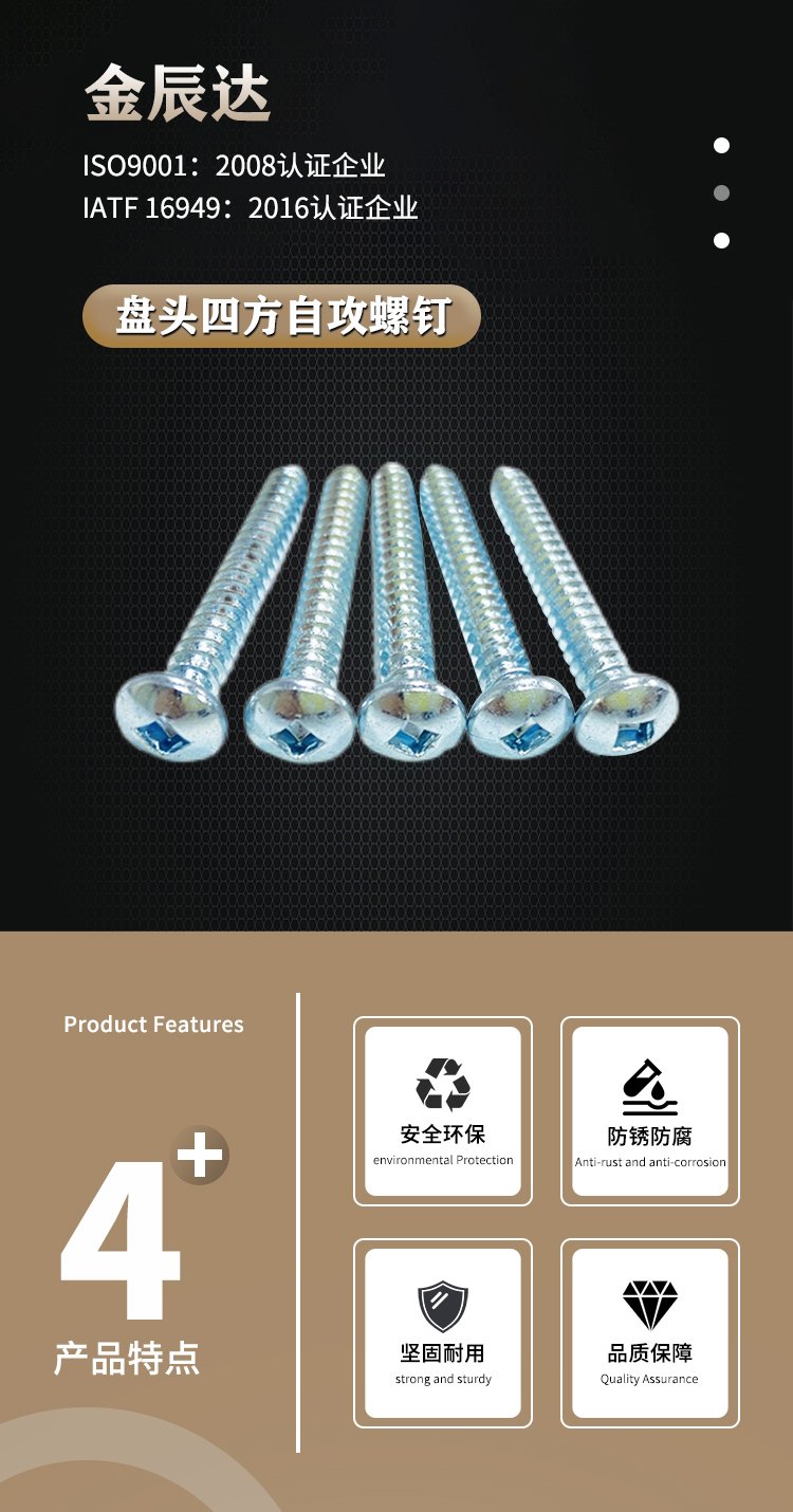 盘头四方自攻螺钉 四方槽铁镀锌自攻螺丝